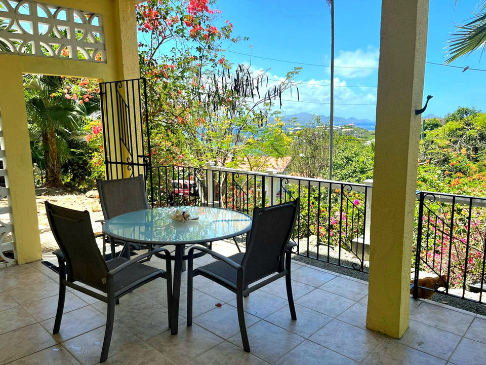 Indigo is a charming, spacious studio condo featuring a large covered veranda with garden and water views. It is the perfect home base for your St John adventure! Loaded with amenities, Indigo is fully air conditioned and has fast Wi-Fi, a comfortable king bed, a fully stocked kitchen, keyless entry, free parking, and reliable backup solar/battery power.